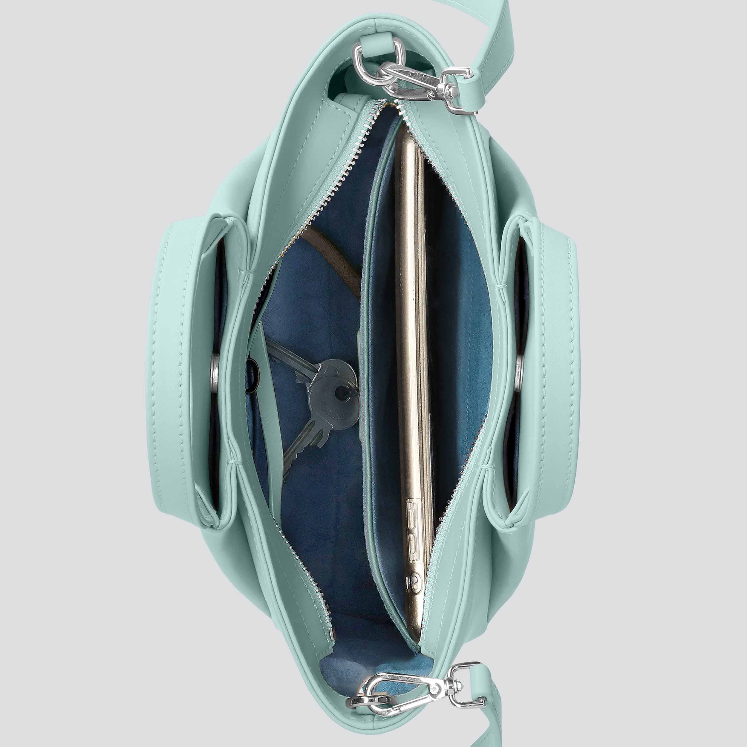 • Full-length metal zip enclosure to keep your belongings safe.